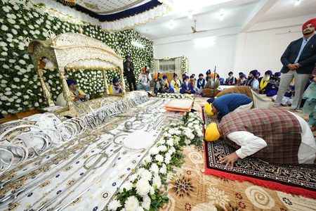 चंडीगढ़, 23 नवंबर . सिख गुरु श्री गुरु तेग बहादुर जी के 350वें शहीदी दिवस के पावन अवसर पर Sunday को श्री आनंदपुर साहिब में धार्मिक समारोह का आयोजन हुआ. इस मौके पर पंजाब के Chief Minister भगवंत मान ने बाबा बुढ़ा दल छावनी में श्री अखंड पाठ साहिब के समक्ष मत्था टेका.