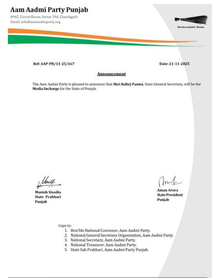 बलतेज पन्नू लंबे समय से पार्टी से जुड़े हुए हैं. वे पहले पंजाब Government में Chief Minister कार्यालय (सीएमओ) में मीडिया रिलेशंस के डायरेक्टर रह चुके हैं. कोविड महामारी के दौरान उन्होंने Government की मीडिया हैंडलिंग में अहम भूमिका निभाई. बाद में उन्होंने इस्तीफा दे दिया था. लेकिन पार्टी से उनका जुड़ाव कभी कम नहीं हुआ.