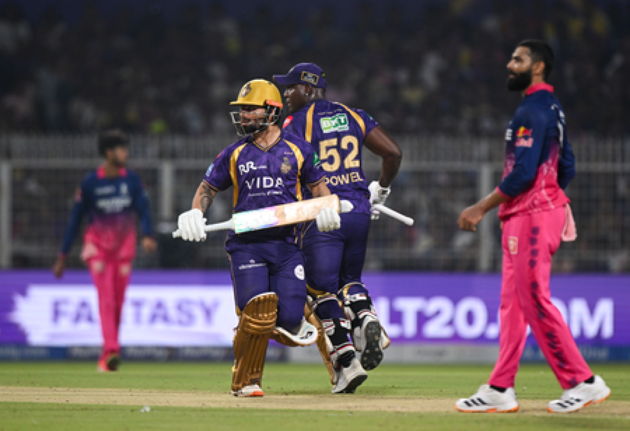 वैभव 28 गेंदों में 2 छक्कों और 6 चौकों के साथ 46 रन बनाकर आउट हुए, जिसके बाद टीम निरंतर अंतराल पर विकेट गंवाती रही. इस बीच जायसवाल 29 गेंदों में 6 बाउंड्री के साथ 39 रन बनाकर पवेलियन लौट गए. इनके अलावा, शिमरोन हेटमायर ने 15 रन, जबकि कप्तान रियान पराग ने 12 रन का योगदान टीम के खाते में दिया. विपक्षी खेमे से कार्तिक त्यागी और वरुण चक्रवर्ती ने 3-3 विकेट निकाले, जबकि 2 विकेट सुनील नरेन के नाम रहे.