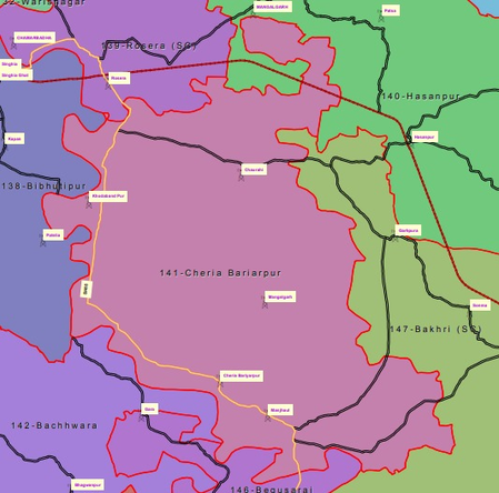 1977 में गठित यह सामान्य सीट चेरिया-बरियारपुर, चौराही ब्लॉकों और नवकोठी के कुछ पंचायतों को कवर करती है. जातीय समीकरण की बात करें तो कुशवाहा समुदाय का दबदबा है, साथ ही यादव, भूमिहार और पिछड़े वोटर प्रभावी हैं.