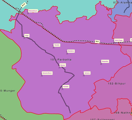 2008 के परिसीमन के बाद, परबत्ता विधानसभा क्षेत्र में परबत्ता प्रखंड, गोगरी प्रखंड की रतन, गोगरी-जमालपुर नगर क्षेत्र, जमालपुर उत्तर, जमालपुर दक्षिण, रामपुर, मुस्कीपुर, पसाहा, बसुदेओपुर, इतहरी, शेरचकला, पैकांत, देवथा, गौछारी और मदारपुर पंचायतें शामिल हुईं. यह खगड़िया Lok Sabha क्षेत्र का हिस्सा और सामान्य (गैर-आरक्षित) सीट है.