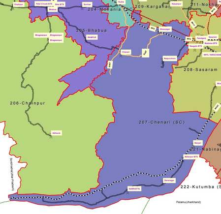 यह क्षेत्र अनुसूचित जातियों (एससी) के लिए आरक्षित विधानसभा सीट है. चेनारी से 23 किमी पूर्व में सासाराम, 30 किमी पश्चिम में भभुआ, 35 किमी उत्तर-पश्चिम में मोहनिया और 40 किमी उत्तर-पूर्व में नोखा स्थित है. दुर्गावती नदी इस क्षेत्र के पास बहती है, जबकि सोन नदी लगभग 30 किमी दूर स्थित है. दोनों नदियां कृषि और जलापूर्ति के लिए जीवनरेखा हैं. चेनारी का एक बड़ा भाग रोहतास पठार पर स्थित है, जो विंध्याचल पर्वतमाला के पूर्वी छोर का हिस्सा है. इस पहाड़ी संरचना के कारण यहां बड़े सिंचाई प्रोजेक्ट लागू करना चुनौतीपूर्ण साबित होता है.