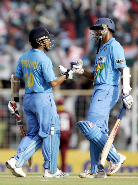 दूसरे ओवर की चौथी गेंद पर सौरव गांगुली (4) रन आउट होकर पवेलियन लौट गए थे. यहां से सचिन तेंदुलकर ने राहुल द्रविड़ के साथ मोर्चा संभाला.