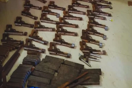 टीम ने मौके से हथियार बनाने वाले छह कारीगरों को गिरफ्तार किया है. Police अधिकारियों ने बताया कि छापेमारी के दौरान फैक्ट्री से बड़ी संख्या में तैयार और अर्धनिर्मित हथियार बरामद किए गए हैं. इनमें देशी कट्टे, रिवॉल्वर, पिस्टल के पार्ट्स और कई तरह के हथियारों के बैरल एवं कैलिबर सामग्री शामिल हैं.