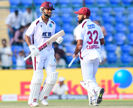 New Delhi, 13 अक्टूबर . वेस्टइंडीज की टीम India के खिलाफ अरुण जेटली स्टेडियम में जारी दूसरे टेस्ट मैच में फॉलोऑन बचाने के बेहद करीब है. Monday को मुकाबले के चौथे दिन जॉन कैंपबेल और शाई होप की शानदार पारियों ने वेस्टइंडीज के ऊपर से पारी की हार का संकट टाल दिया है.