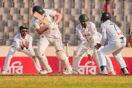 मीरपुर, 22 नवंबर . शेर-ए-बांग्ला स्टेडियम में बांग्लादेश के खिलाफ खेले जा रहे दूसरे टेस्ट में आयरलैंड पर बड़ी हार का खतरा मंडरा रहा है. आयरलैंड ने Saturday को समाप्त हुए चौथे दिन के खेल में अपने 6 विकेट 176 रन पर गंवा दिए थे. Sunday को मैच के पांचवें दिन आयरलैंड को जीत के लिए 333 रन की जरुरत होगी, जबकि उसके पास सिर्फ 4 विकेट हैं.