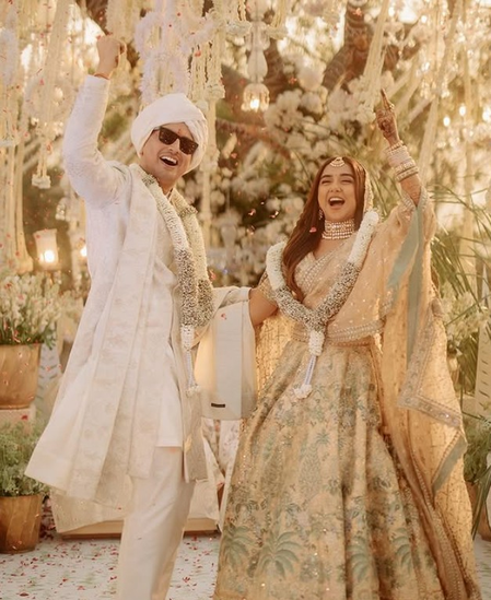 अनुव जैन और हृदि नारंग: पॉपुलर सिंगर अनुव जैन ने भी 14 फरवरी 2025 को अपनी गर्लफ्रेंड हृदि नारंग के साथ शादी की. हृदि इस बार पहली बार करवा चौथ का व्रत रखेंगी.