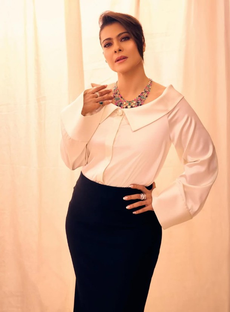 फोटोज में काजोल ने वाइट कलर की एक खूबसूरत शर्ट पहनी हुई है, जिसके कॉलर और स्लीव्स अलग और फैशनेबल हैं, जो उनके लुक को और खास बना रहे हैं. शर्ट के साथ उन्होंने ब्लैक कलर की लॉन्ग स्कर्ट को चुना, जो उनके स्टाइल में एक सादगी को जोड़ती है. उनके गले में मल्टीकलर नेकलेस है, जो उनके लुक को और भी निखार रहा है. तस्वीरों में उनके चेहरे पर आत्मविश्वास झलक रहा है. वह कैमरे की ओर मुस्कुराकर पोज दे रही हैं.