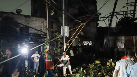 Maharashtra, 1 अक्टूबर . Maharashtra के ठाणे जिले के भिवंडी शहर में एक बड़ा हादसा उस समय होते-होते बच गया, जब तेज हवा और बारिश के कारण एक पेड़ बिजली की मेन लाइन पर टूट कर गिर गया. घटना की सूचना तुरंत बिजली विभाग को दी गई, जिसके बाद लाइन से पेड़ हटाने का काम शुरू किया गया.