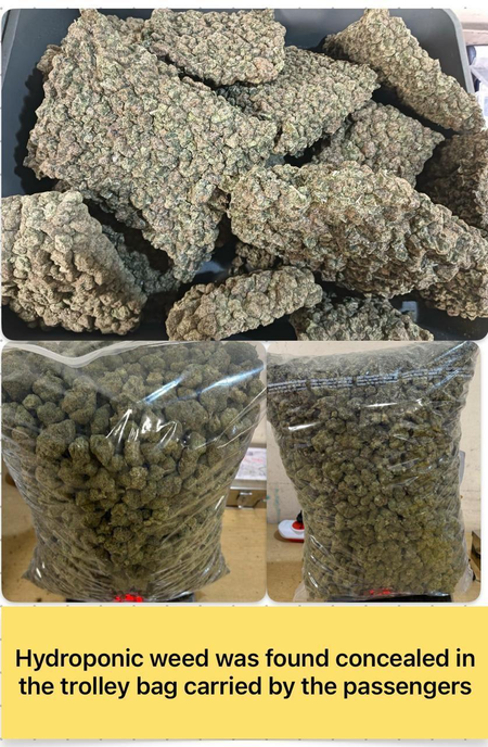मुखबिर से मिली सूचना के बाद सीमा शुल्क अधिकारियों ने बैंकॉक से उड़ान संख्या वीजेड 760 से आए तीन अलग-अलग यात्रियों को रोककर उनकी तलाशी ली. इन तीनों के चेक इन ट्रॉली बैग की तलाशी लेने पर भारी मात्रा में संदिग्ध हाइड्रोपोनिक वीड (मारिजुआना) बरामद हुआ.