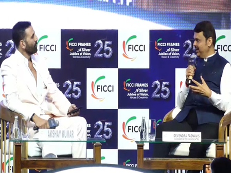 Mumbai , 7 अक्टूबर . Mumbai में चल रहे अंतरराष्ट्रीय सम्मेलन ‘फिक्की फ्रेम्स’ में Bollywood एक्टर अक्षय कुमार और Chief Minister देवेंद्र फडणवीस को साथ देखा गया. इस दौरान मंच से एक्टर ने सीएम से कई सवाल पूछे और सीएम ने सवालों का जवाब देते हुए फिल्म नायक का किस्सा भी शेयर किया.
