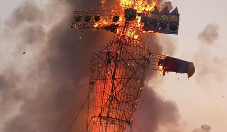 वहीं, विजयादशमी का पर्व Haryana के चरखी दादरी जिले में भी धूमधाम से मनाया गया. जगह-जगह बुराई के प्रतीक रावण के पुतले जलाए गए. बस स्टैंड के पीछे ग्राउंड में आयोजित कार्यक्रम के दौरान देर शाम आतिशबाजियों के बीच 51 फुट ऊंचा रावण का पुतला 15 सेकंड में जलकर राख हो गया. 41 फुट के मेघनाद और कुंभकर्ण के पुतले भी धूं-धूंकर जले.