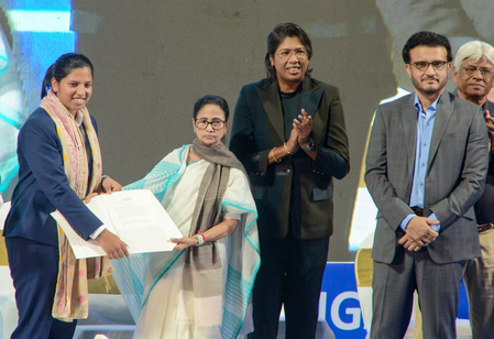ऋचा घोष: बंगाल सरकार ने बंग भूषण पुरस्कार और डीएसपी पद से नवाजा, कैब ने भेंट किया सोने का बल्ला