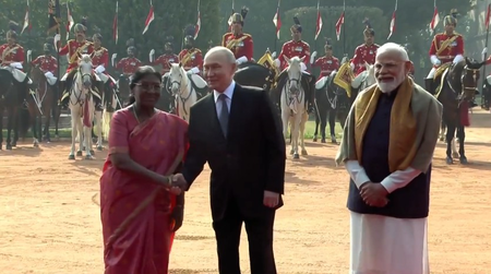 President पुतिन ने प्रेसिडेंट मुर्मू और पीएम मोदी से हाथ मिलाया. इसके बाद रूसी President को गार्ड ऑफ ऑनर से सम्मानित किया गया. पहले रूस का राष्ट्रगान और फिर India का भी राष्ट्रगान हुआ. इसके बाद President पुतिन ने गार्ड निरीक्षण भी किया और सम्मान को स्वीकार किया.