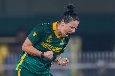 तेज गेंदबाज मारिजैन कप्प ने इंग्लैंड के खिलाफ 7 ओवर गेंदबाजी की, जिसमें 20 रन देकर 5 विकेट हासिल किए. इसी के साथ मारिजैन ने वनडे विश्व कप में अपने विकेटों की संख्या 44 तक पहुंचा दी.