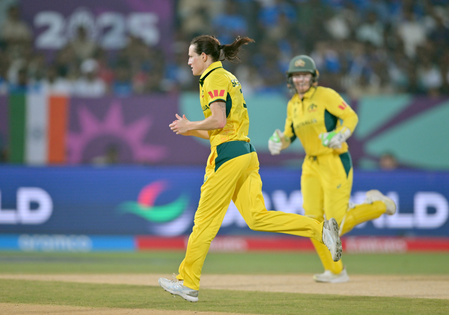 नवी Mumbai , 30 अक्टूबर . महिला विश्व कप 2025 का दूसरा सेमीफाइनल Thursday को India और ऑस्ट्रेलिया के बीच खेला जाना है. इस मुकाबले में सिर्फ एक विकेट के साथ तेज गेंदबाज मेगन शट्ट महिला वनडे विश्व कप में सर्वाधिक विकेट हासिल करने वाली ऑस्ट्रेलियाई बन जाएंगी.