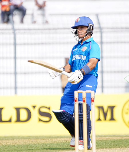 विपक्षी टीम की ओर से इकबाल हुसैन एमोन ने 10 ओवरों में 57 रन देकर 5 विकेट हासिल किए. उनके अलावा, रिजान हुसैन ने 2 विकेट निकाले. मोहम्मद सोबुज और अजीजुल हकीम ने 1-1 सफलताएं प्राप्त कीं.